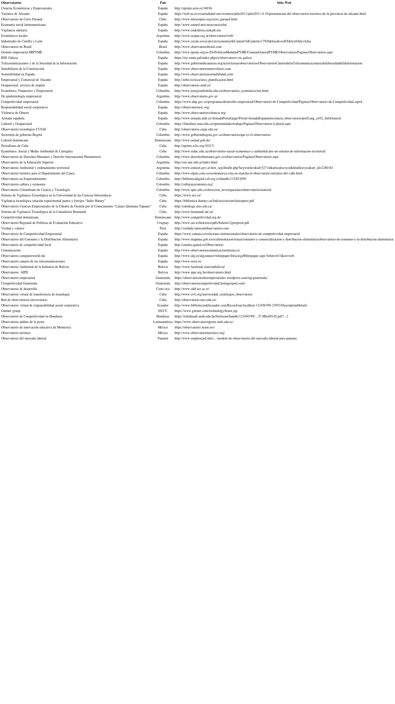 Anexo - Principales observatorios analizados
