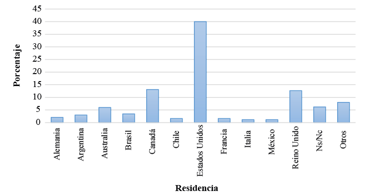En cuanto al lugar de residencia, el mayor porcentaje está comprendido por América, que representa el 65,3 %, seguido por Europa con un 22,3 %. Cuando se desglosa la información, se observa que América del Norte concentra el mayor porcentaje de cruceristas siendo Estados Unidos el que agrupa el 40,9 % de los pasajeros, seguido por Canadá con el 13,1 %. Europa por su parte está liderado por Reino Unido con un 12 %, mientras que la participación de Oceanía está concentrada en Australia pero en menor medida, representando solo el 6 % (Fig. 2). Esta información es consistente con estudios previos realizados en el nivel local (Informe de cruceros turísticos, temporada 2015/2016; Infuetur, 2016).