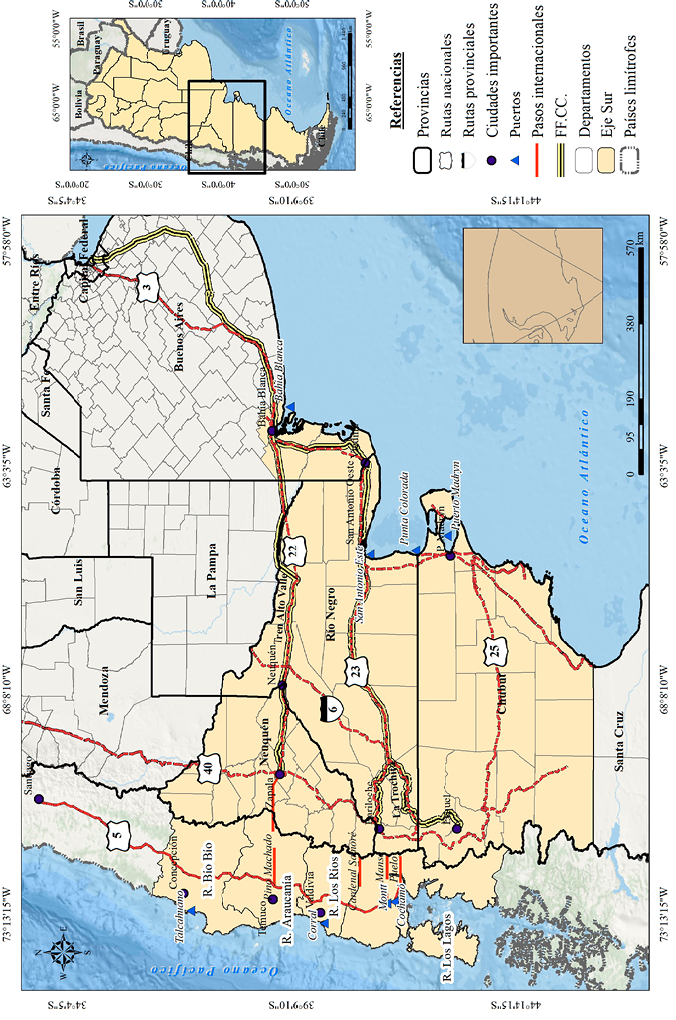 La región sur del continente, denominada Eje del Sur por proyectos como la Iniciativa para la Integración en Infraestructura Regional Suramericana (IIRSA), delimitada por el departamento de Biedma de la Provincia de Chubut, las provincias de Neuquén, Río Negro y los partidos de Bahía Blanca, Villarino, Patagones y Coronel Rosales de la provincia de Buenos Aires de la Argentina, y las Regiones VIII, IX, XIV y X de Chile, se ha transformado en un importante corredor logístico con pretensiones de crecimiento y de expansión ante la hiperespecialización de la región y la tracción del mercado mundial. En tal sentido se desarrolla una infraestructura acorde a los nuevos requerimientos del comercio internacional, priorizando la multimodalidad y las salidas bioceánicas.