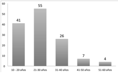 La gráfica muestra que la población afrocolombiana es mayoritariamente joven. En orden de importancia los rangos de edad son: de 21 a 30 años; de 10 a 20 años, de 31 a 40, de 41 a 50 y de 51 a 60. Las características etáreas de este grupo de población dificulta la documentación histórica de su proceso de asentamiento en la localidad de Suba.