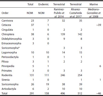 Mammals in the Mexican Official Norm NOM-059-SEMARNAT-2010