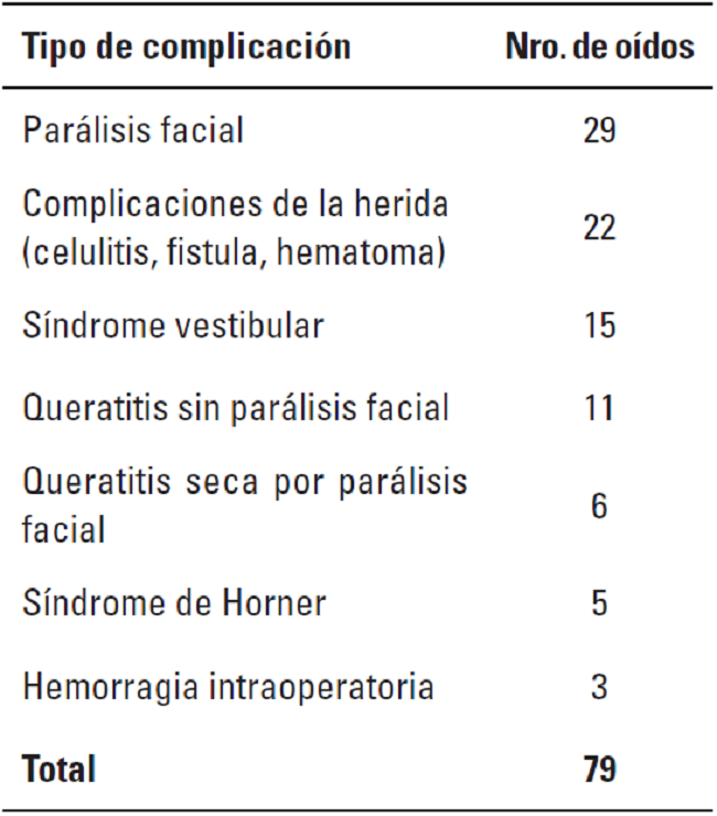 Como se ha mencionado, esta intervención puede presentar diversas complicaciones graves. No obstante, al considerar que la OM es una condición extremadamente dolorosa que puede implicar el oído interno y aun extenderse a nivel intra craneano (Sturges et al. 2006), el riesgo-beneficio amerita recomendarla. Un conocimiento detallado de la anatomía de la región quirúrgica redunda en la disminución de complicaciones. Los casos de evolución prolongada que manifiestan dolor al abrir la boca o déficit neurológico, pueden no mejorar completamente con la cirugía (Hardie et al. 2008). No obstante, en la experiencia los autores, los animales con síndrome vestibular al momento de la cirugía se han recuperado satisfactoriamente (Cruz et al. 2005).