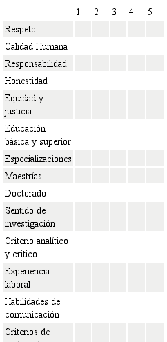 2. Califique de 1 a 5, siendo (1) más relevante y (5) menos relevante, con relación a las siguientes (17) características seleccionadas, desde el punto de vista personal, académico y profesional, en un profesor, a la hora de elegirlo (Tabla 2):