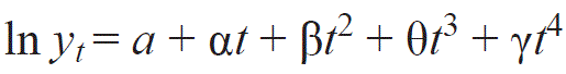 También, se puede evaluar la convergencia a partir de ecuaciones de regresión que dependan del tiempo a través de una relación no lineal cuadrática, cúbica o hasta un polinomio de grado cuatro como la señalada en (3):