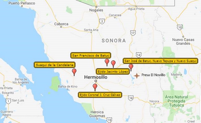 El caso que se estudia es el de los desplazados por la construcción de la presa El Novillo en 1964, quienes habitaban los pueblos sonorenses de Batuc, Tepupa y Suaqui, mismos que quedaron bajo el agua cuando la presa entró en funcionamiento. El organismo responsable de la construcción fue la Comisión Federal de Electricidad (CFE), en un ímpetu por aumentar la capacidad de energía eléctrica en la región. Por su parte, el gobierno estatal fue el mediador entre el organismo y los pobladores. Igualmente, fue quien gestionó las indemnizaciones a las que podían acceder los afectados. Los ofrecimientos beneficiaban a ciertos grupos y dejaba a otros en evidente desventaja, lo que provocó que algunos de los habitantes se organizaran para fundar los centros de población mediante la solicitud de tierras ejidales.5