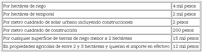 La opción del pago en efectivo proponía las siguientes compensaciones para quienes fueran propietarios con documentos probatorios: