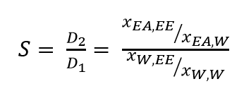 S = separation factor;