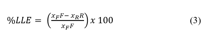 Liquid-liquid extraction (LLE) is an important unitary operation employed in the chemical industry due to its high efficiency and low energy consumption and environmental impact. It is one of the most important mass transfer processes in chemical engineering and an alternative method to distillation4. Its efficiency is based on the physical and chemical properties of a solvent (organic phase) used to separate, purify or concentrate a certain constituent of an aqueous phase5,6.