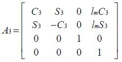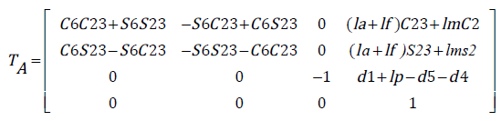 In the Eqs. (12-14) and Eqs. (17-19), C23 denotes Cos (Ө2 + Ө3 ), S23 denotes Sin (Ө2 + Ө3 ).