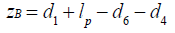 d2, d3, d4, d5, d5 are link offset length between the successive links.