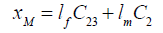 C2, C3, C6, C7 are Cosine function of joint angles.