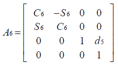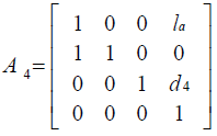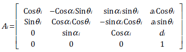 The homogeneous transformation Matrix [26] Ai is represented as a product of four basic transformations in the Eq. (1). It expresses the position and orientation of the tool with respect to the reference frame as given in Eqs. (2) and (3).