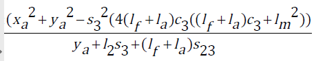 The inverse kinematic model is expressed in the Eqs. (30-33) by solving the Eqs. (13) and (14) by required simplifications.