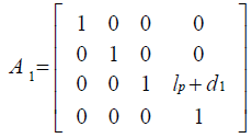 The direct kinematic model to find the orientation and the position of the tool A is obtained by applying the homogeneous transformations given in the Eqs. (11) and (12).