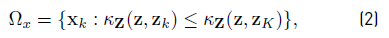 where Ωx is a set containing the K nearest neighbors of z* in Z = f(X) and λk ϵ