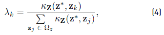 where zK is the K-th neighbor of z* in Z according to a Gaussian kernel kZ(∙,∙) (Equation (3)]: