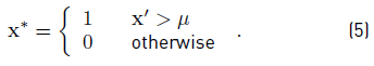 Where Ωz is the set containing the corresponding elements of Ωx in the ellipse-based representation space. Finally, a thresholding procedure (µ ϵ [0, 1]) is applied to estimate the new binary VTA x* (Equation (5)] as:
