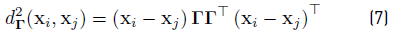 PxM, with M < P, is a linear projection matrix, and ΓΓ⊤ is the corresponding inverse covariance matrix. Then, the projection matrix Γ is computed by solving the following optimization problem (Equation (8)]: