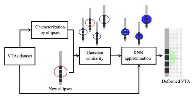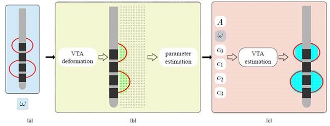 Figure 3 outlines the main steps required to implement the above described method. This approach allows estimating a target VTA whose characteristics match those of the VTAs in a precomputed dataset, both in terms of their mathematical representation and biophysical behavior. The deformed VTA and the precomputed dataset can then serve as inputs to the algorithms for parameter estimation.