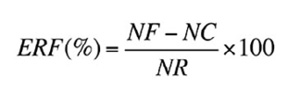 Eficiencia de recuperación de P (%ERF): se aplicó el método de la diferencia (Morillo et al., 2007; Syers et al., 2008; Puentes et al., 2014), el cual refleja la habilidad de la planta para absorber el P con respecto al testigo absoluto. Se calculó utilizando la expresión (Ec. 1):
