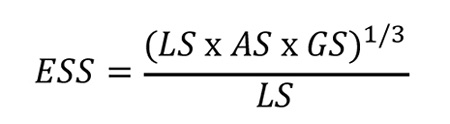 a) Esfericidad de semilla (ESS) expresado en porcentaje (ec. 1).