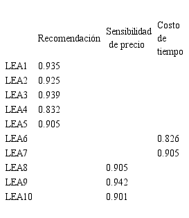 Para la variable lealtad, se puede apreciar en la tabla 4 que se obtuvieron las mismas dimensiones que se habían propuesto, donde los diez ítems fueron distribuidos de la misma manera, por lo que se confirma la estructura latente propuesta (Tabla 4).