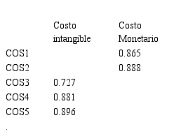 Para el análisis factorial de la variable costos cambiantes se aprecia que como se vuelve a confirmar los elementos que conforman cada una de las dos dimensiones, como lo son el costo intangible, con tres ítems y el costo monetario con dos (Tabla 5)