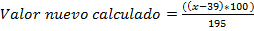 En la Escala de Bienestar Subjetivo Ryff, que va de 39 a 234, primero se restó 39 a cada puntuación para iniciar el rango desde 0, hasta 234-39=195; posteriormente, se utilizó la fórmula: