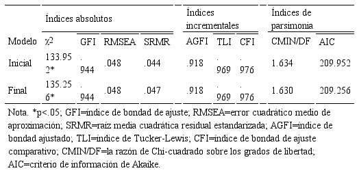 Tras la eliminación de la vía (path) no significativa, el modelo final sigue presentando un ajuste óptimo (ver Tabla 4).