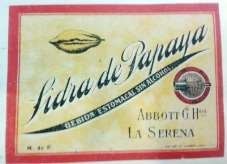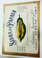 En el periodo relevado no hemos podido encontrar muchos registros de Sidra de Papaya. Sin embargo, con los que contamos hemos visto que de una marca a otra el diseño no cambia demasiado. Los elementos básicos son: un marco color dorado o anaranjado; el nombre “Sidra de Papaya” en una posición central superior, con un tamaño de letra mayor al del resto de los elementos lexográficos; el elemento gráfico principal es una imagen del fruto; poseen algún mensaje alusivo a las propiedades medicinales de esta bebida, y todos provienen de La Serena. La constancia de los elementos en estos diseños da cuenta de una fuerte tradición regional.
