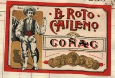 Caso interesante también es el que se da con las etiquetas de coñac. Al hablar de productos típicos, se esperaría encontrar elementos que se relacionen a la cultura nacional, sin embargo, son los membretes de coñac los que más imágenes alusivas a personajes y símbolos nacionales presentan. Como en las Figuras 22 y 23, diseños que circularon para el centenario de Chile en 1910.