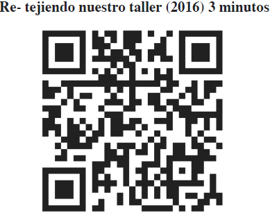 La estrategia colaborativa, la vinculación entre colectivos de tejedoras a través de la exposición y los talleres, así como la realización audiovisual, fueron metodología y objeto de estudio. Esto último, me permitió abordar desde una perspectiva personal y reflexiva, mi propia experiencia como tejedora, hasta lograr integrar conocimientos de otras experiencias textiles a las que me fui vinculando a través de la investigación. También fue la oportunidad de ligar subjetividades y a la vez responder a mis inquietudes etnográficas desde este complemento creativo que acompaña la escritura académica.