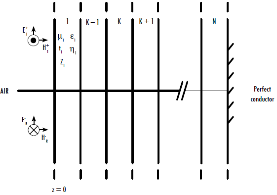) the wave propagates in the Z-axis, at the boundary of each layer a reflected , and an incident (