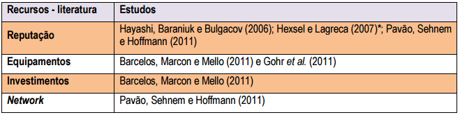 Feita uma comparação no Quadro 6 entre os resultados encontrados no presente trabalho com de alguns outros estudos abordados no referencial teórico, pôde-se identificar alguns recursos em comum, com destaque para a reputação da empresa.