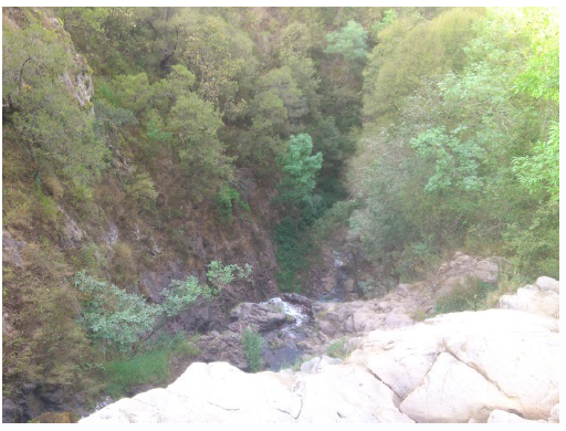 El terreno es rocoso en su mayoría y se presenta en una sola ladera que va de oeste a este, el cual es el punto más bajo. La pendiente va de 21 a 64 grados, variando entre estas medidas a lo largo y ancho del terreno. El paso del agua ha modelado el paisaje dejando como vestigio esta micro cuenca, dando como resultado una variación en la altura, lo que favorece el clima del lugar y propicia el ambiente idóneo para la alta variedad de vegetación. En la parte más baja del terreno cruza el Río Grande (Ilustración 4), y en el interior del predio atraviesa un canal de riego (Ilustración 5)