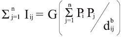Where: I corresponds to interaction, Pi is population in I, Pj is population in j, G is gravitation constant and d is distance (Isard et al., 1998).