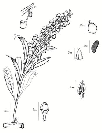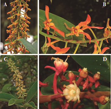 Esta familia se caracteriza principalmente por presentar dos tipos de nectarios, los cuales según la terminología de Schmid (1988), corresponden a nectarios extra-reproductivos laminales [glándulas laminales abaxiales = “glandulae hypophyllae” o “hypophyllous glands” en el sentido de Weber (1956) y Ward y Price (2002), respectivamente] y nectarios reproductivos, los cuales corresponden a brácteas nectaríferas que pueden estar presentes en los pedicelos, en la base de estos, en el raquis o en la base de la flor, cuya posición, unida a la forma de la inflorescencia, entre otras características, define los límites genéricos (Figura 1).