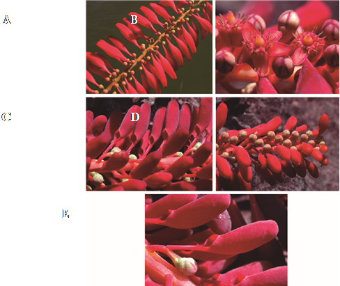 Por su parte, los nectarios reproductivos corresponden a los nectarios nupciales extraflorales (sensuSchmid, 1988; Weberling, 1992) o recipientes nectaríferos ascidiiformes (sensuFont Quer, 1964), y son los que más llaman la atención por su gran tamaño, color, variedad de formas y principalmente, por su posición en la inflorescencia (Figuras 1-10). Estos pueden ser sacciformes, tubulares, cimbiformes, ciatiformes, cocleariformes, galeados, cuculados o urceolados y de tamaño muy variable entre las especies. Además, los nectarios reproductivos son de gran importancia taxonómica en las Marcgraviaceae, toda vez que estos podrían servir como marcadores filogenéticos (Giraldo-Cañas, 2011).
