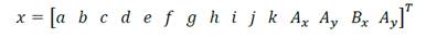 y el vector de las variables dimensionales que define la geometría del mecanismo es dado por: