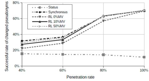 The successful rate of changed pseudonyms: This refers to the total number of successfully changed pseudonyms with regard to the number of used pseudonyms;