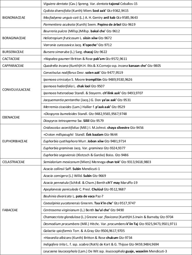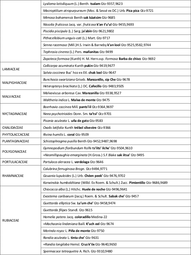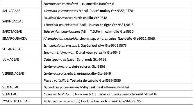 A los especialistas: G. Carnevali (Orquideas), I. Ramírez (Bromeliaceas), J.L. Tapia y S. Hernández (Asteraceas y diversas especies), R. Duno (Fabaceas); J.J. Ortiz (Poaceas), J.S. Flores (Fabaceas) y J.M. Mukul por utilizar el mapa de localización.