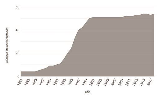 El aumento en la oferta universitaria, sobre todo a partir de los años noventa, no parece incidir positivamente en los costos para el estudiantado (ver Figura 3).