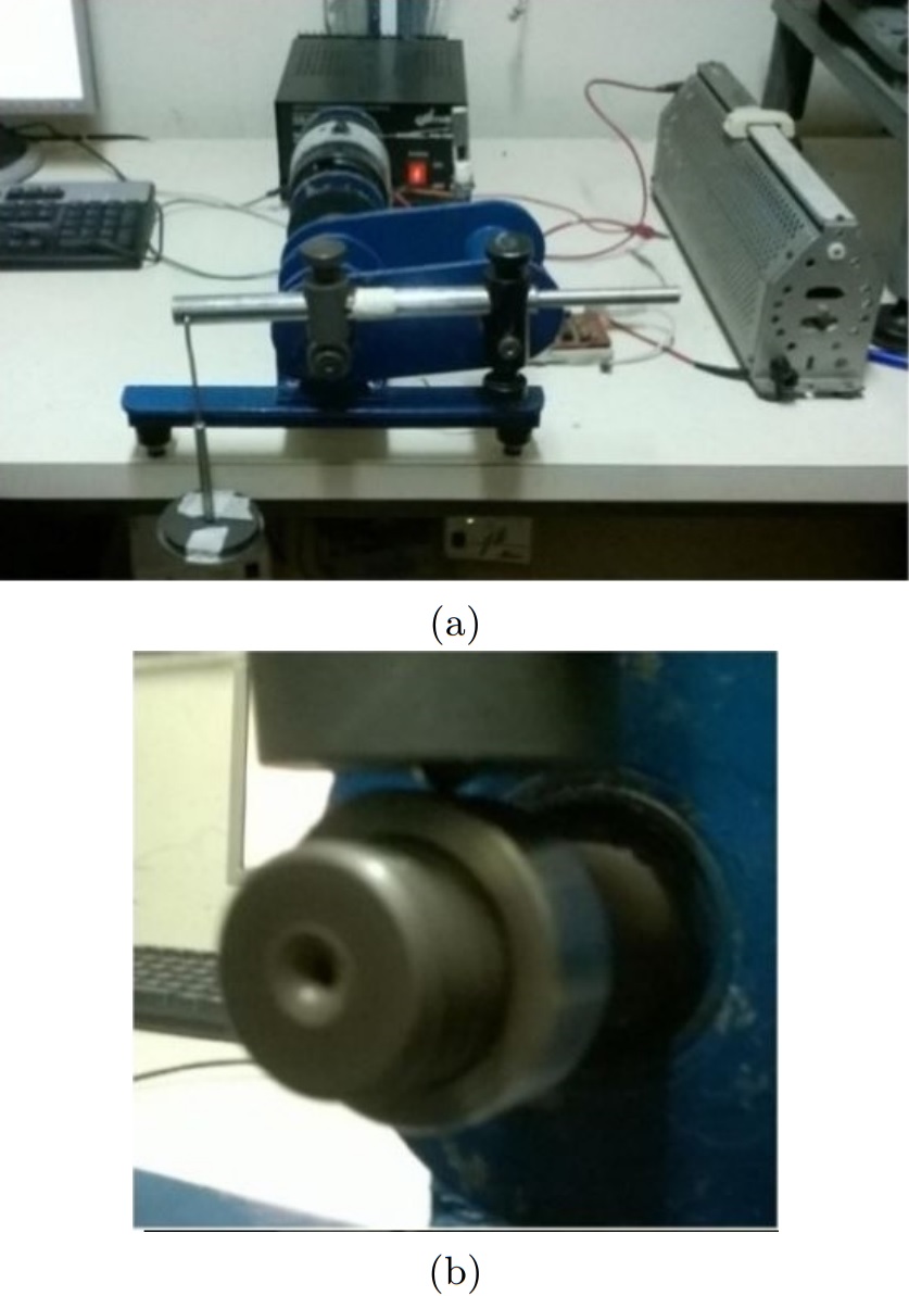 Los parámetros que se pueden controlar en el tribómetro descrito son la carga normal, velocidad de deslizamiento y distancia o tiempo de duración del ensayo. En cuanto al movimiento, en esta máquina el anillo de prueba se instala sobre el eje del equipo, por lo cual este es el elemento móvil (ver Figura 1b), por su parte la bola se coloca en una portaesfera directamente en la barra de carga, por lo que permanece estacionaria, resultando un movimiento giratorio de contacto lineal no concordante.