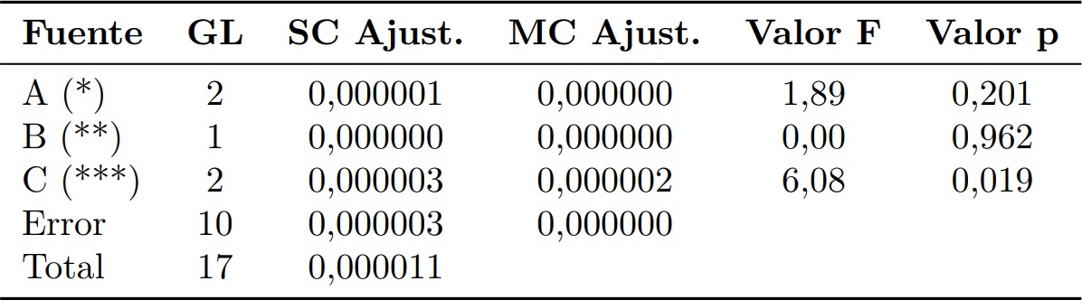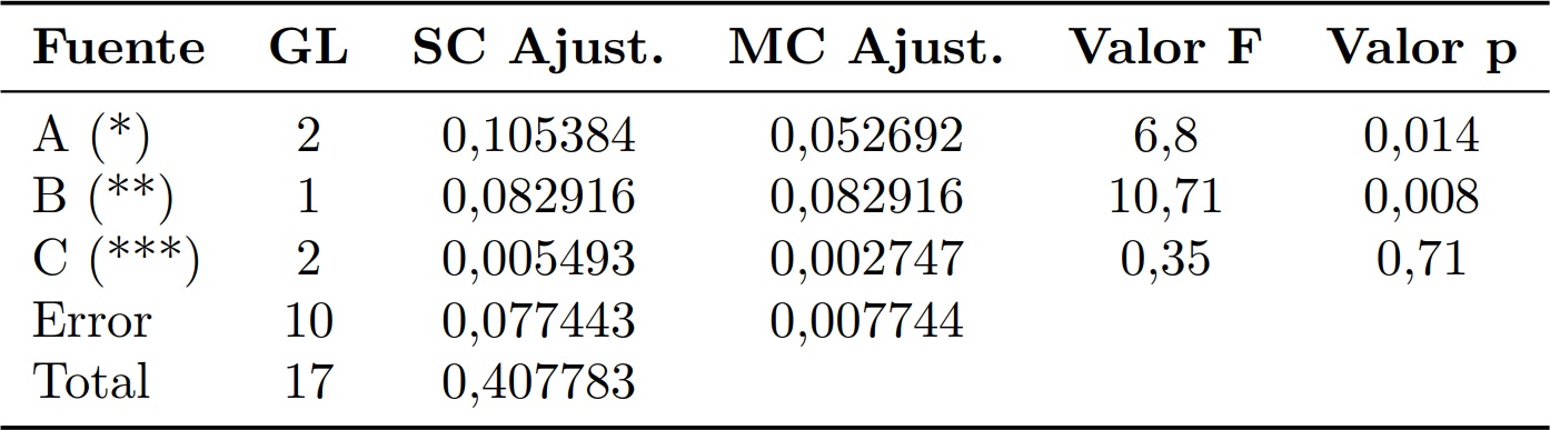 Un análisis de varianza, se realizó mediante la aplicación Minitab®, programa específicamente empleado para el diseño y análisis experimental.