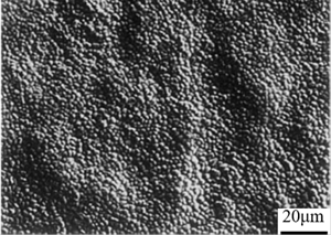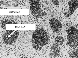 El aumento en la velocidad de enfriamiento no alteró significativamente el volumen de la fracción del zinc primario; sin embargo, el tamaño y el número de las dendritas primarias de zinc fueron alteradas. Las muestras enfriadas rápidamente contenían pequeñas, pero numerosas, dendritas y en las de enfriamiento lento había menos dendritas de mayor tamaño. La cantidad de dendritas de zinc influye en el proceso de corrosión ya que es la fase que se corroe preferentemente, por lo cual resulta en una mayor área anódica y consecuentemente una mayor velocidad de corrosión a medida que aumenta la velocidad de enfriamiento. En la Figura 12 se observa la corrosión preferencial de las dendritas de zinc respecto al eutéctico.