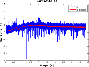 En la Figura 12 y 13 se muestran las gráficas de las corrientes id, iq respectivamente en las condiciones ya mencionadas. Es importante hacer notar que con el uso de un inversor multinivel el rizo en las corrientes disminuye de manera considerable por el uso combinado de dicho inversor y el controlador diseñado.