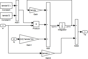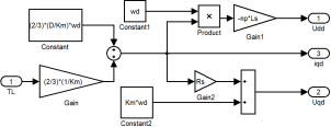 Los puntos de equilibrio nos servirán para calcular las variables de referencia deseadas i*d, i*q, u*d, u*d, w*. Para este caso w* es el valor de la velocidad deseada que se medirá en la flecha del motor. Para obtener estas referencias se toma el conjunto de las ecuaciones (1) y se igualan las derivadas a 0, por tanto, se obtienen las siguientes expresiones: