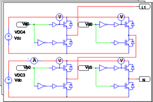 Para este trabajo se utiliza un inversor multinivel de celdas en cascada. Esta configuración se basa en celdas conectadas en serie para sumar los voltajes y obtener los 5 niveles deseados como se muestra en la Figura 9.