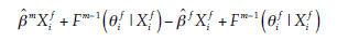 where G = m,f indicates boys and girls, respectively; Xi a vector of observed characteristics; and the last term of the equation (4), εiG = FG-1 (θiG | XiG) is the inverse of the accumulated residual function, which is composed of two parts: the quantile of an individual i in the residuals distribution of θiG and the residuals distribution function, Fi.