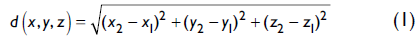 Donde la distancia euclidiana entre x, y, z está dada por la raíz de la suma del cuadrado de las diferencias de las variables de la función. El resultado de esta ecuación representa el error de los datos en la medición con el TLS para cada uno de los targets, y a partir de este valor se calculó la media por cada target dentro de cada uno de los escaneos, que de ahora en adelante será entendida como la variable de respuesta para el desarrollo del modelo estadístico por medio de la implementación de MLG.